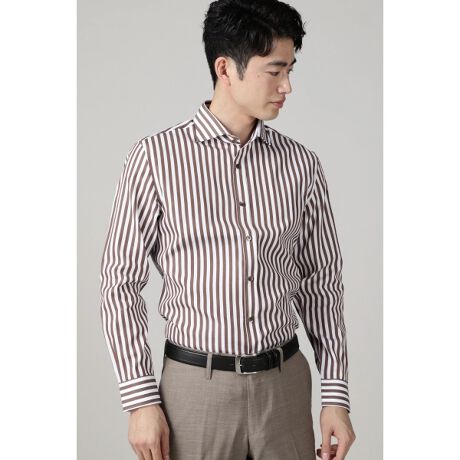 ロンドンストライプ素材を使用したカッタウエイシャツ仕様のドレスシャツです。きれい目カジュアルのインナーからビジネスシーンにも対応できるカッタウエイシャツならではのコーディネートが様々なコーディネートが楽しめる魅力の商品です。