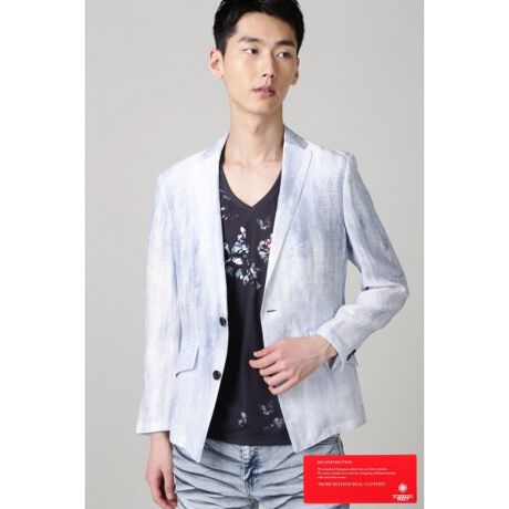 イタリアプラトー地区に位置するPANDA社の麻クレープムラプリントで仕立て上げたテーラードジャケット。ナローラペルにスラントポケット、センターベントや本切羽の本格仕様で、大人の装いに最適なアイテムです。