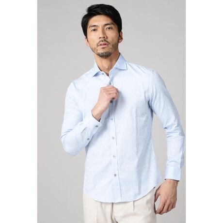 生地の特性を活かしたシンプルなデザイン。衿型はカットアウェイで別名「ホリゾンタルカラー」とも呼ばれており、水平線のように衿が開いたデザイン。少しボタンを開けて頂いてもきれいに広がって見える様に設定。