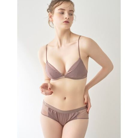 <b ><font color=#00a676>【シアー感がおしゃれなノンワイヤーブラとショーツのセット】</font></b>