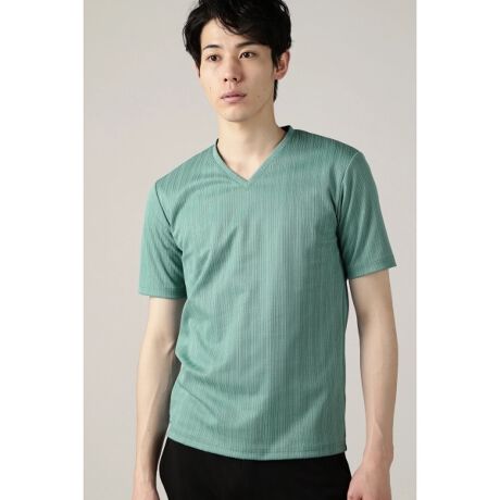 抑えめにした微光沢とベーシックな色展開はデイリーに着用しやすい仕上がりです。パターンにこだわったVネックの開き加減は一枚での着用時に開きすぎない絶妙なラインとなっています。またジャケットやシャツのインナーとしての着用を前提にパターンを作成していますので、袖回りやネックにもたつきが無いのも特徴です。よりシンプルで合わせやすいアイテムに仕上げています。