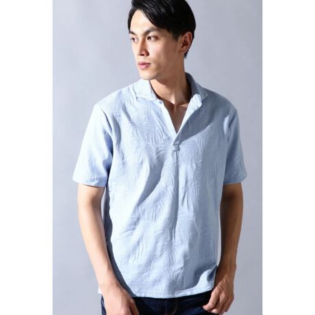 リンクスでパームツリーの柄を施し表面の素材感も楽しめるスキッパーポロ。