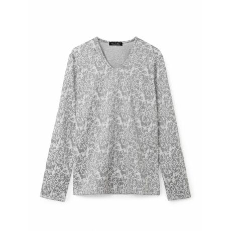 アラベスク柄ジャガードのジャージィ素材を使用したUネック長袖Tシャツ。