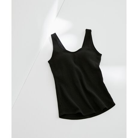 程よい肌魅せが叶う深めに開いたバックデザインが、ヘルシーな印象を醸し出すタンクトップ。気軽にさらりと着られるカップ付きの仕様が嬉しく、1枚ではもちろん、ジャケットやシアートップスのインナーとしても活躍する万能な一着。