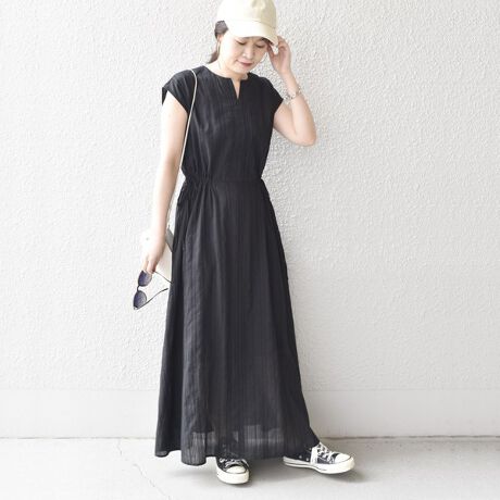 ・カラミドビー素材にハシゴレースが夏らしく涼しげなワンピース。