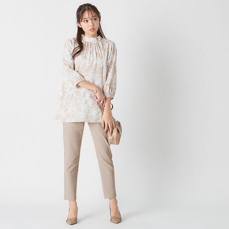 ・ウエスト部分のタックデザインが作る、程よいゆる感が気になる腰回りをカバー。