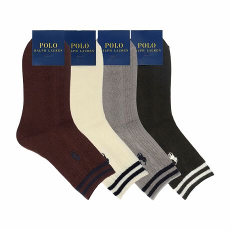 POLO RALPH LAUREN レディース 毛混 ワンポイント ケーブル編み ラインソックス