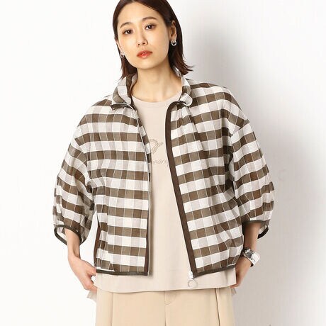 〔TALLサイズ〕コットンシルクギンガムチェック ブルゾン