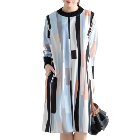襟袖プリーツのレトロなランダムストライプワンピース。ランダムなストライプ柄が他にない大人の個性を演出します。襟と袖はプリーツデザインになっており上品な印象に。綿混合のさらりとした肌触りの良い生地です。ワンピースとしてもチュニックとしても着まわして頂けます。