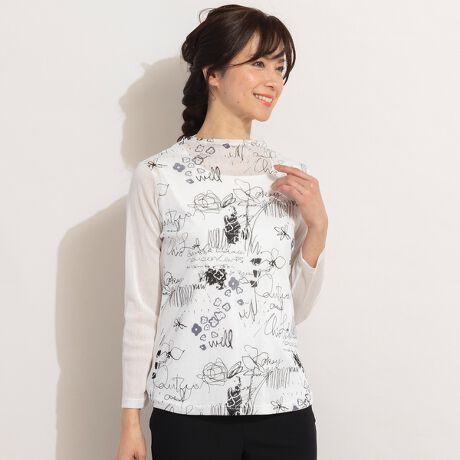 綿チュールモノトーンプリントカットソー