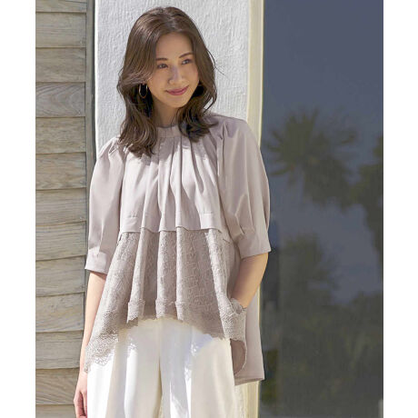 前身頃のレースペプラムのデザインがフェミニンさをプラス。