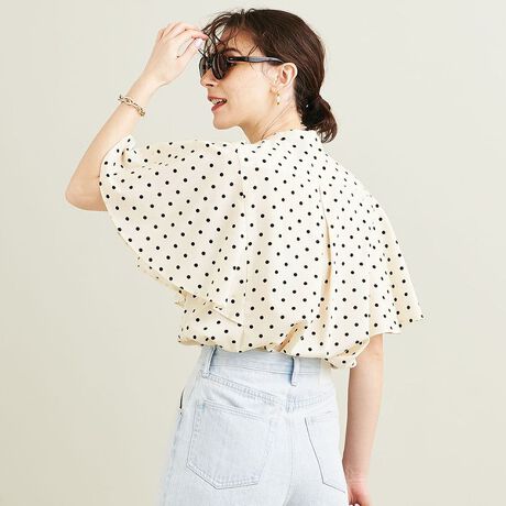 オンオフの主役。ポルカドット×バタフライスリーブの愛されブラウス。