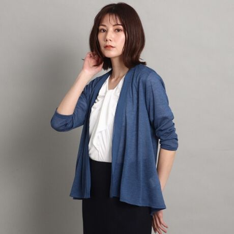 後ろ丈を長めに、前後差を付けたシルエットのカーディガン。