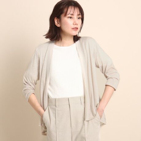 後ろ丈を長めに、前後差を付けたシルエットのカーディガン。