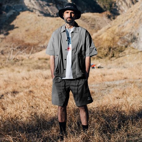 軽量なコットン-ナイロン混ストレッチ素材を使った半袖シャツです。