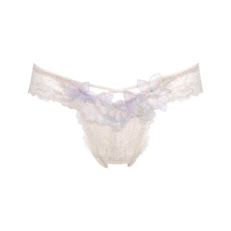見るたびにときめいてしまう、甘やかで可憐なデザイン。色ごとに表情を変える、レースとアップリケのマリアージュ。「パルファージュ」2022年春夏シーズンコンセプトは「わたしを甘やかすもの。」毎朝、身につけるたびにひそかにときめいてしまう。いまほしいのは、そんなご褒美ランジェリー。どんなときも楽しく、美しくあるために。さあ今日も、ごきげんな1日を。・フロントは裏打ち付きで透けにくい・通常のTバックショーツよりもバックのかぶりが広いので、Tバック初心者の方もはきやすい安心感のあるデザイン・箔プリントをのせた繊細な編みレースと、スポットプリント手法を用いた透明感あるアップリケを合わせた華やかさのあるデザイン・左脇のアップリケにはクリスタル付き