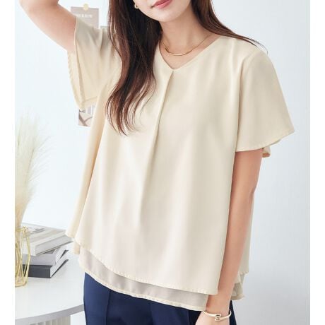 ・ジョーゼット素材にシフォンを重ねたレイヤード風ブラウスでお洒落。