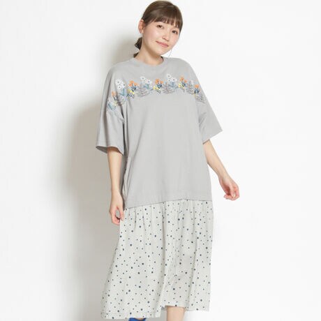 ビックシルエットのTシャツとワンピースをレイヤードしている様な今年らしいデザインです。