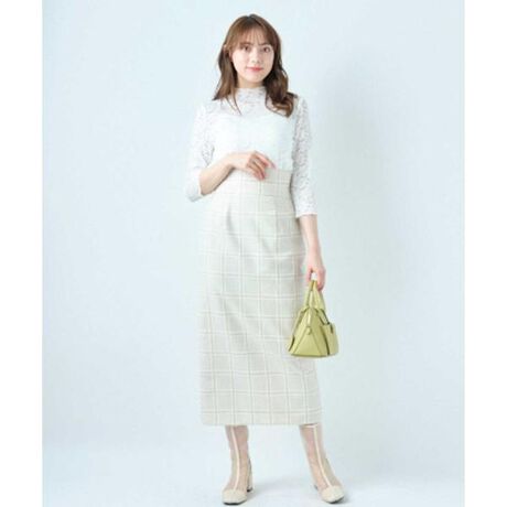 ハイウエストデザインで足長効果抜群なロングタイトスカート【Design】・タイトなシルエットがからだのラインを綺麗に見せてくれるロングタイトスカート。・ハイウエストデザインなので、足長効果でスタイルアップを演出してくれます。・ウエストバックがゴム仕様となっている為、ストレスフリーな履き心地。・ギンガムチェック柄の上にレースリボンをチェックのラインの上に重ねているデザインなので、シンプルなトップス合わせでも華やかな印象となります。・バックファスナー仕様。・バックにスリットが入っているので動きやすく、歩く度に女性らしさを引き立ててくれます。【Fabric】・ポリエステル混素材を使用。・スムースな裏地付き。・印象の異なるベージュチェックとブラックチェックの2色展開となります。【Care】ドライクリーニング