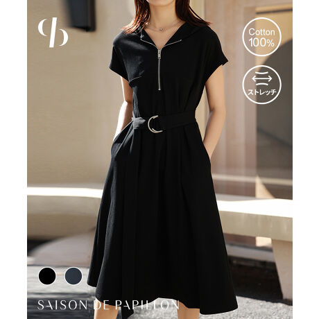 リラックスムード漂うカットソー地のハーフジップパーカーワンピース。