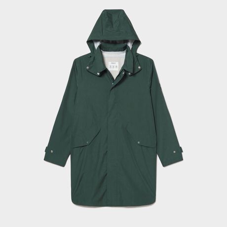 すっきりとしたシルエットで都会的な印象に\n\n-素材の特徴-\nすぐれた防水性と透湿性を兼ね備えたナイロン素材\n\n-デザインの特徴-\n絶妙な丈感とシルエット\n\n-サイズ感-\nレギュラーフィット\n\n乗馬スタイルの影響を受け継ぐ、防水性・透湿性に優れた2.5レイヤーのライディングコートです。アウトドアシーンだけでなく、シティでの着用も考慮されたデザインで、AIGLEらしい1着に。すっきりとした前立てやフロントのフラップポケットも特徴のひとつ。身体のカーブを考慮した袖のカッティングと切り替えが、快適な着心地を実現。ポーチ付きなので、持ち運びも便利です。