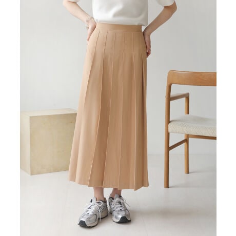 カジュアルなTシャツやニット、女性らしいブラウスなど様々なアイテムと相性がいいプリーツスカート。