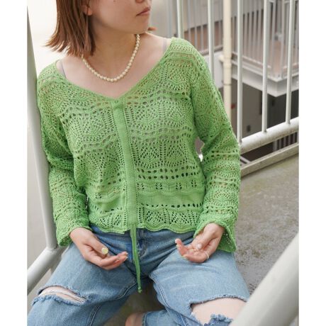 レースのような繊細な模様のクロシェ編みプルオーバー。