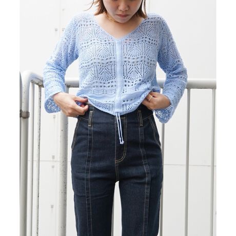 レースのような繊細な模様のクロシェ編みプルオーバー。