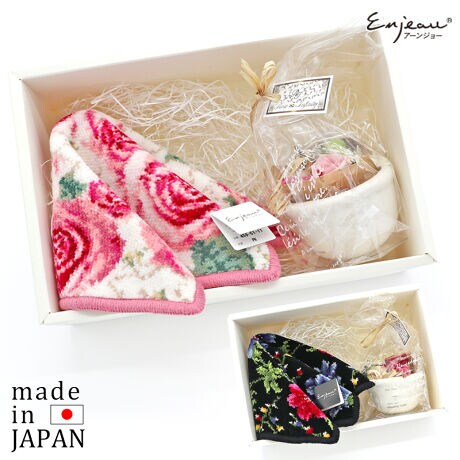母の日2022 シェニール織ハンカチ&ミニプリザーブドフラワーカップセット ギフトセット