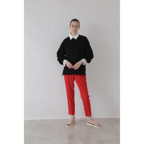 ヴィヴィッドな赤が新色です。同素材のジャケットとセットアップで揃えて頂けます。※ウォッシャブルアイテム※この商品は、糸及び素材の特性上、引っかけ・引っかかりにより糸がとびだしたり、ひきつれが生じやすい性質をもっています。ご着用の際はご注意ください。