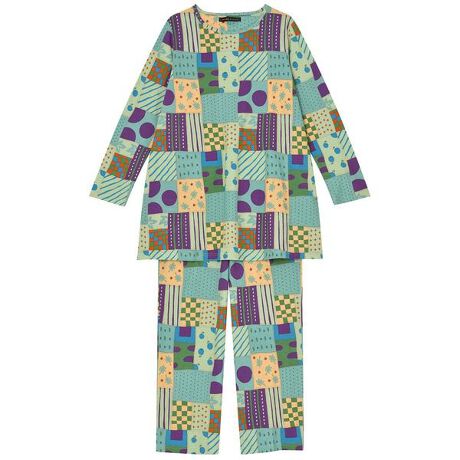 【パジャマ(ロング袖ロングパンツ)】クリエーター“俣野温子”がデザインする、甘くなりすぎない大人かわいいテキスタイルとカラーで、くつろぎ時間を楽しく過ごせるウェア夏の夜にここちよい、シャリ感のある強撚天竺素材です。いろいろなテキスタイルをパッチワークしたような、にぎやかなプリントです。※アイテムによって柄の出方が異なりますのでご了承ください。【サイズ詳細】M:バスト107.0cm 着丈76.0cm ズボン脇丈95.0cm ウエスト55.0cmL:バスト115.0cm 着丈76.0cm ズボン脇丈95.5cm ウエスト59.0cm※出来上がり寸法を表示しております。※サイズ詳細の寸法には多少の差異がございます。