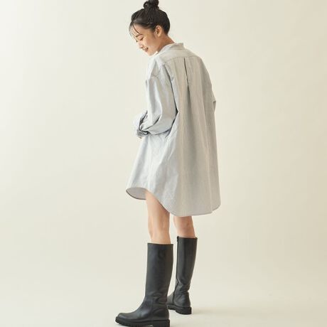 【WEB限定】<info. BEAUTY&YOUTH> ストライプ バンドカラー オーバーサイズシャ