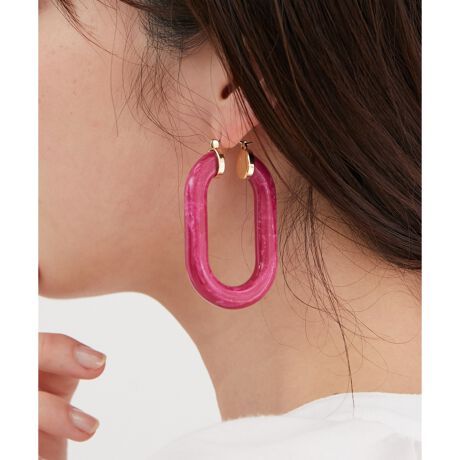 マーブルアクリルオーバルフープピアス