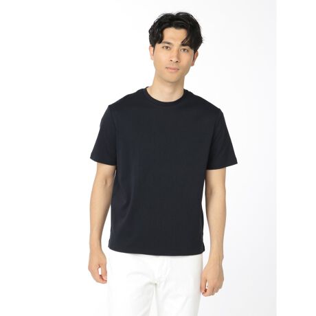 シンプルなデザインで綺麗見えする、クルーネックの半袖Tシャツです。ジャケットインで裾を出して着た際にベストバランスに見える着丈に設定しています。堅すぎない品の良さを演出できるオンオフ兼用アイテムです。
