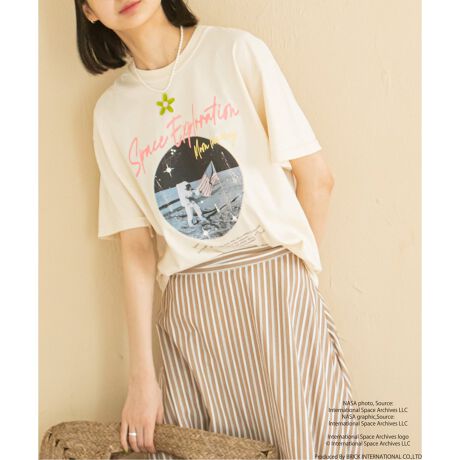 コーディネートのアクセントになるロックテイストなデザインがプリントされたNASAのTシャツ。