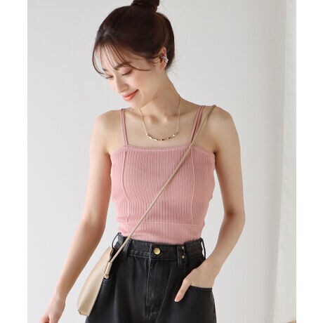 ダブルストラップがポイントのサマーリブニットキャミソール