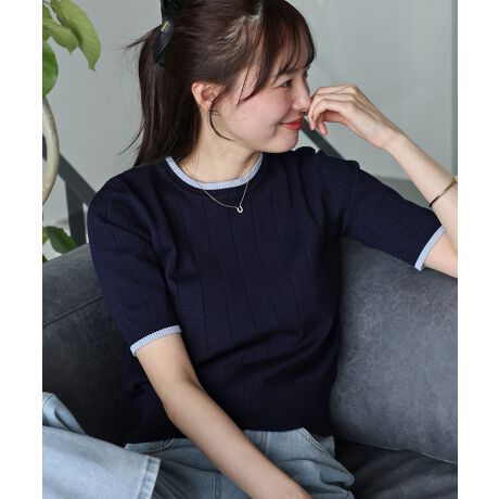 テイストを問わないベーシックな半袖サマーニットはコーディネートに欠かせないアイテム。