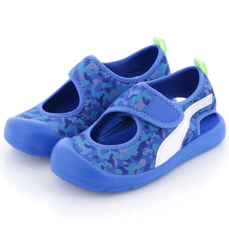 暑い季節を乗り切るためのぴったりなアイテム。着脱が簡単なクイッククロージャー仕様と、元気に走り回ってもつま先を守るトウの仕様が特徴。キュートなプリントもアイキャッチなシューズです。