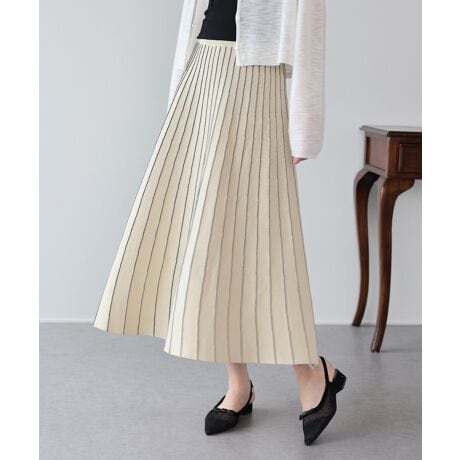 ストライプの柄が入るように編み立てられ、プリーツ見えして上品な印象に。