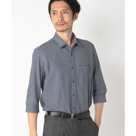 ライクラT-400ファイバーを使用したCOOLMAX素材で作られたシャツ。伸縮性、回復性、生地の通気性、吸水速乾性など優れた機能を兼ね備えています。またサッカー地の凹凸が肌への接地面を少なくしサラサラとした着心地になっています。袖丈は七分丈。カジュアルにTシャツの上に羽織ってもよし、または袖を折り返してクールビズ用シャツとしても使える汎用性の高いデザインとなっています。程よく個性があるアイテムですのでスラックスパンツと合わせて着て頂ければ上品に着こなせます。