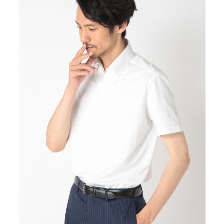 特殊加工素材「ディスノーティス」の生地を使用した半袖シャツです。組織がハイゲージニットで構成されており伸縮性が高く、ノンストレスでご着用いただけます。生地の裏面は汗がとどまらず素早く吸水しムレにくく、快適な着心地です。