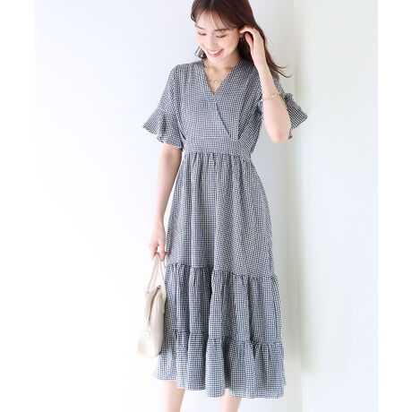 夏の本命、ギンガムチェックの半袖ティアードロング丈ワンピース