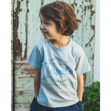 ベベの【 蓄光 プリント 】 昆虫 カブトムシ クワガタ ロゴ Tシャツ (90〜150cm)。