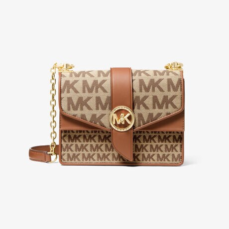 全体にブランドのイニシャルを施し、レザーと洗練されたハードウェアでアクセントを付けた、可愛らしくて個性的なGREENWICH コンバーチブル クロスボディ スモール - ジャカード。光沢のあるチェーントリムのストラップ付きでクロスボディとしてもショルダーバッグとしても幅広く使えます。驚くほどゆったりとした内側には、一日に必要なすべてのアイテムが収納できます。
