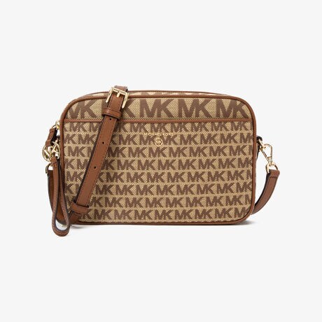 ラウンドジップ式のタイムレスなシルエットに、異なるロゴサイズのシグネチャーパターンで新鮮な表情に仕上げているJET SET CHARM EW カメラバッグ ラージ - ジャカード。複数のドロップポケットに加え6つのカードスロットを内蔵し、機能性も兼ね備えたクロスボディです。ストラップを外してそのままトートにインすれば、ポーチとしてトラベルシーンにも活躍。