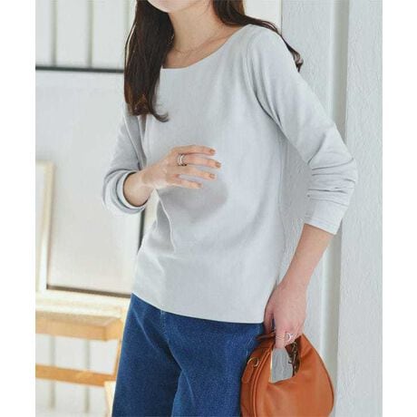 すっきりしたネックラインとシンプルなデザインがどんなボトムにも相性抜群。