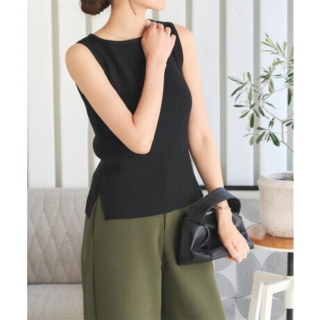 ボートネック×ノースリーブのすっきりとした上品な表情に。