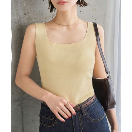 1枚で着ても安心感のあるスクエアネックのスリーブレスプルオーバー。