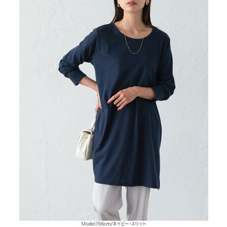 ヒップまで隠れる丈感で、体型カバーにも繋がります。