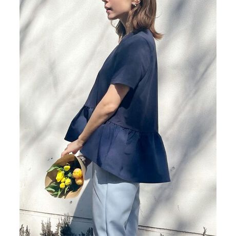 着るだけでスタイルアップ&華やか見えが叶う、異素材MIXのペプラムフレアTシャツです。